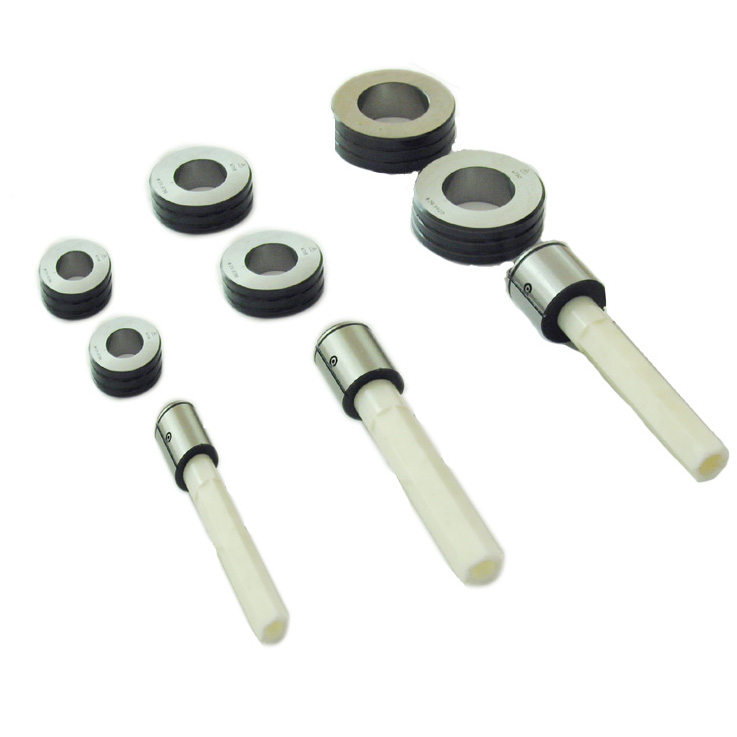 測量頭的標準件是上、下限校對規(環規)各一個,用來校正量儀的倍率。測量時,將測量頭插入被測孔內,量儀指示的數值為被測孔內徑的誤差值。如果將測量頭沿被測孔作軸向移動,量儀指示的差值為孔在移動范圍內的錐度。如果測量頭在被測孔內作相對轉動,則可測得被測孔的圓度。